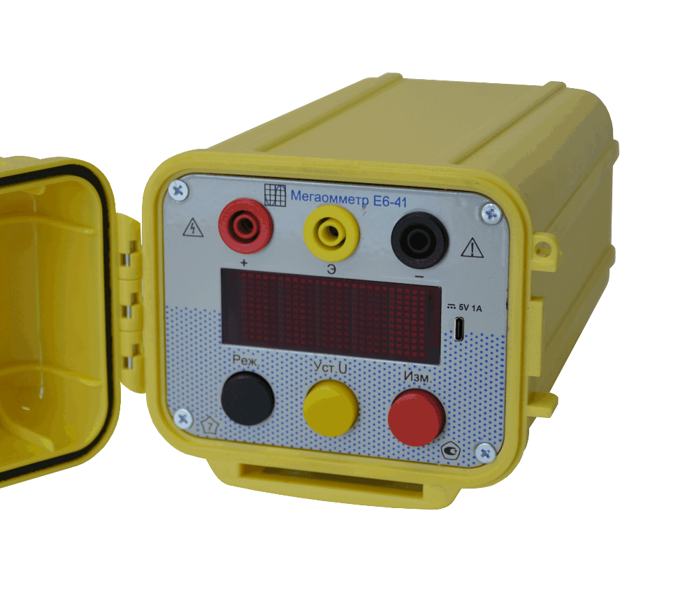 Мегаомметр Е6-41 предназначен для измерений сопротивления изоляции, напряжения постоянного и переменного тока.