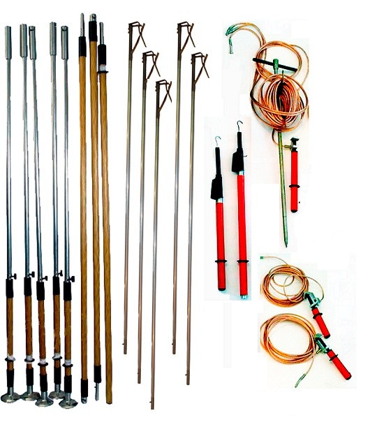 Комплект штанг для заземления ВЛ 0,4-10 кВ КШЗУ-0,4-10Н предназначен для заземления проводов отключенных ВЛ напряжением 0,4-10 кВ непосредственно с поверхности земли, а с указателями напряжения также для проверки наличия или отсутсвия напряжения на воздушных линиях, при температуре от -45°С до +45°С и относительной влажности воздуха не выше 80% при 20°С.